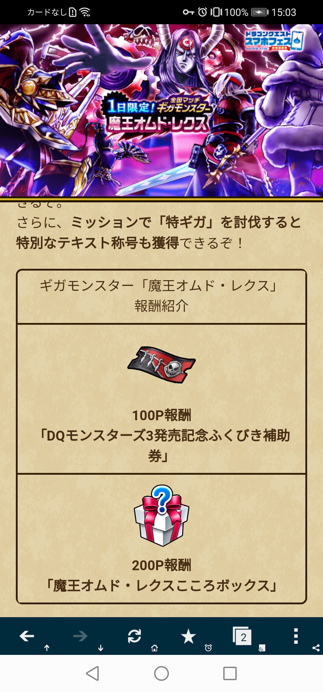 【DQウォーク】日曜イベのオムドの報酬は何?こころドロップはある?